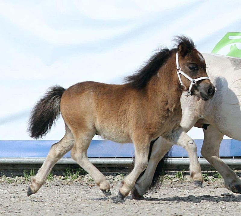 2020 Fohlenchampionat in Neustadt Dosse. Siegerfohlen bei den Shetlandpony unter 87 cm. mit 45,5 Punkten Typ. 9,5 Ext. 8,5 und in der Bewegung eine 10.